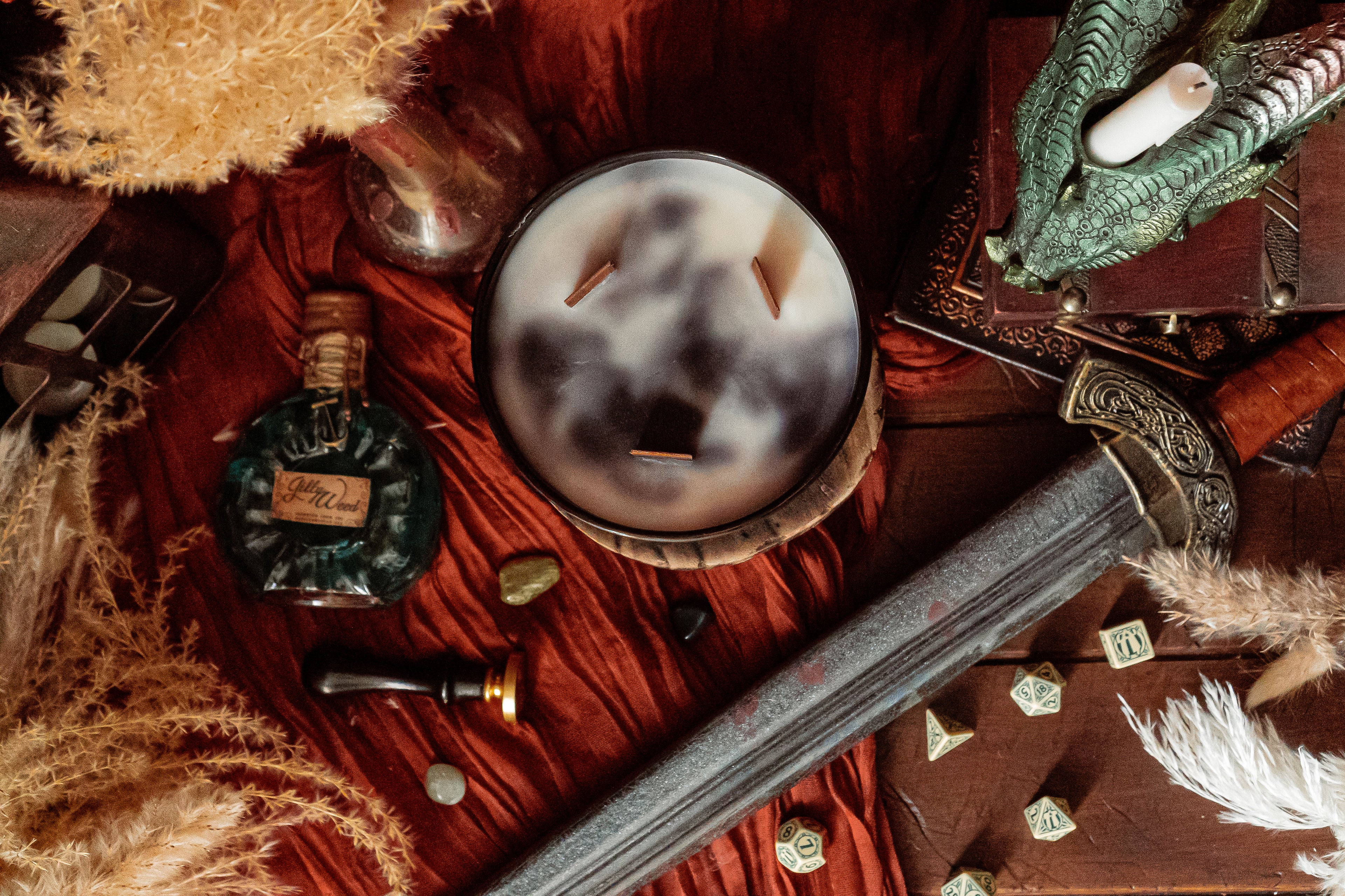 By day, I’m brewing up magical candles at Wizard’s Flame, blending scents that transport you to enchanted forests or dusty old libraries. By night, I’m probably rolling dice as a Dungeon Master, playing a support in video games, or getting into buried in a book about draconic creatures.